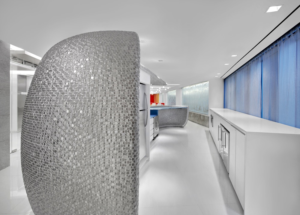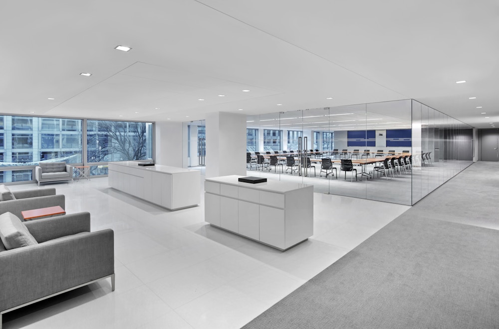 The design breaks down the distinction between the offices on the primes sides of the building and those that are not by visually opening up the interior spaces and establishing a draw towards the non-prime side of the floor for collaboration and support functions. These open work areas are intended to be flexible areas capable of supporting the departments or law firm practice support functions, including litigation and case management.