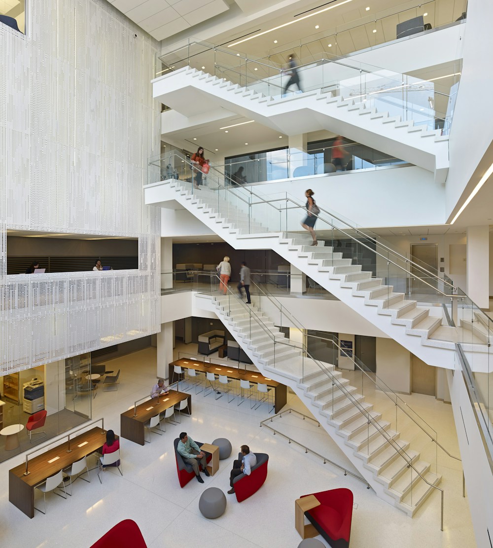 Building upon the transparency established at street level, STUDIOS' design brings new levels of visual and physical connections to the education environment. In addition to allowing light to penetrate deep into the atrium, the design uses glass throughout the classrooms and other programmed areas so that light is pulled into individual rooms. This also establishes heightened connections between students, faculty, professors, and staff which enhances the dynamism that makes up the school. Classrooms can be seen from the common areas and puts education on display.