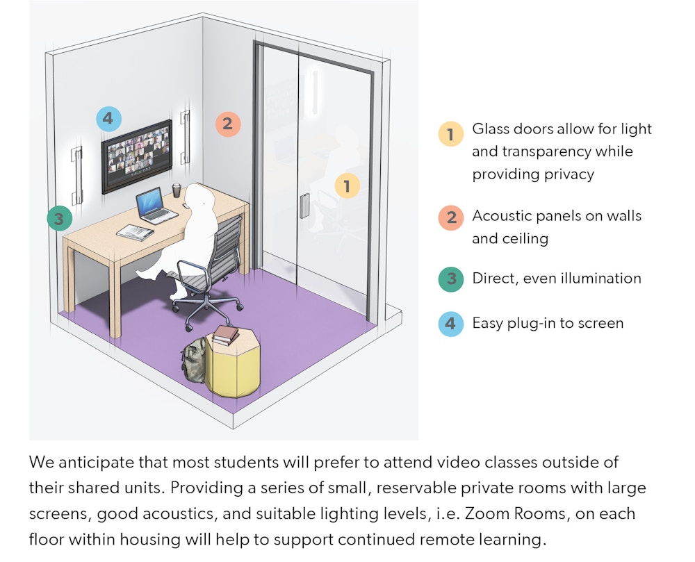 In a shift to a hybrid model of in-class and remote-while-on-campus learning, students will desire suitable spaces where they can attend video classes.