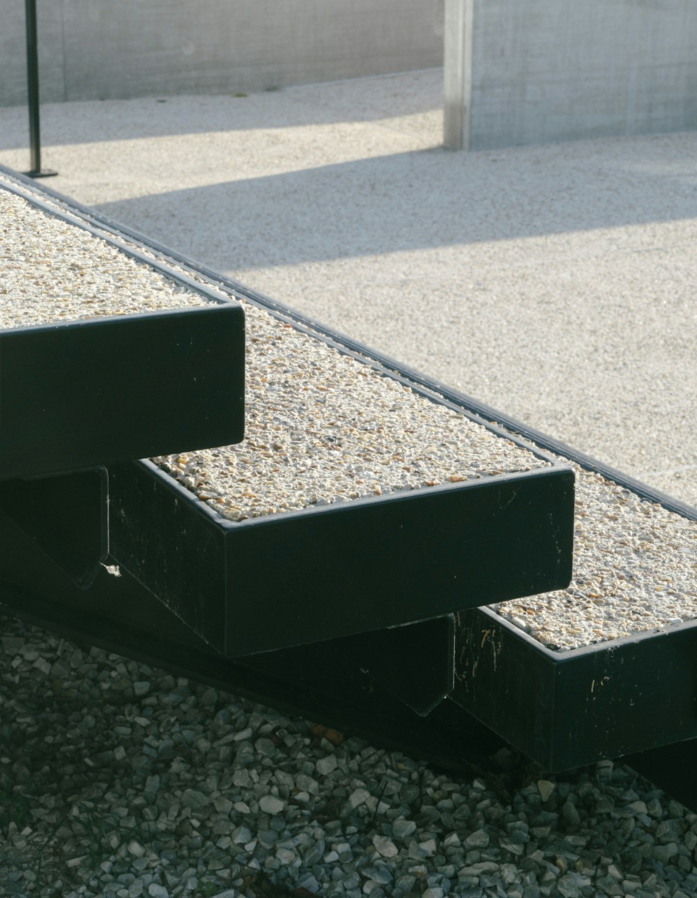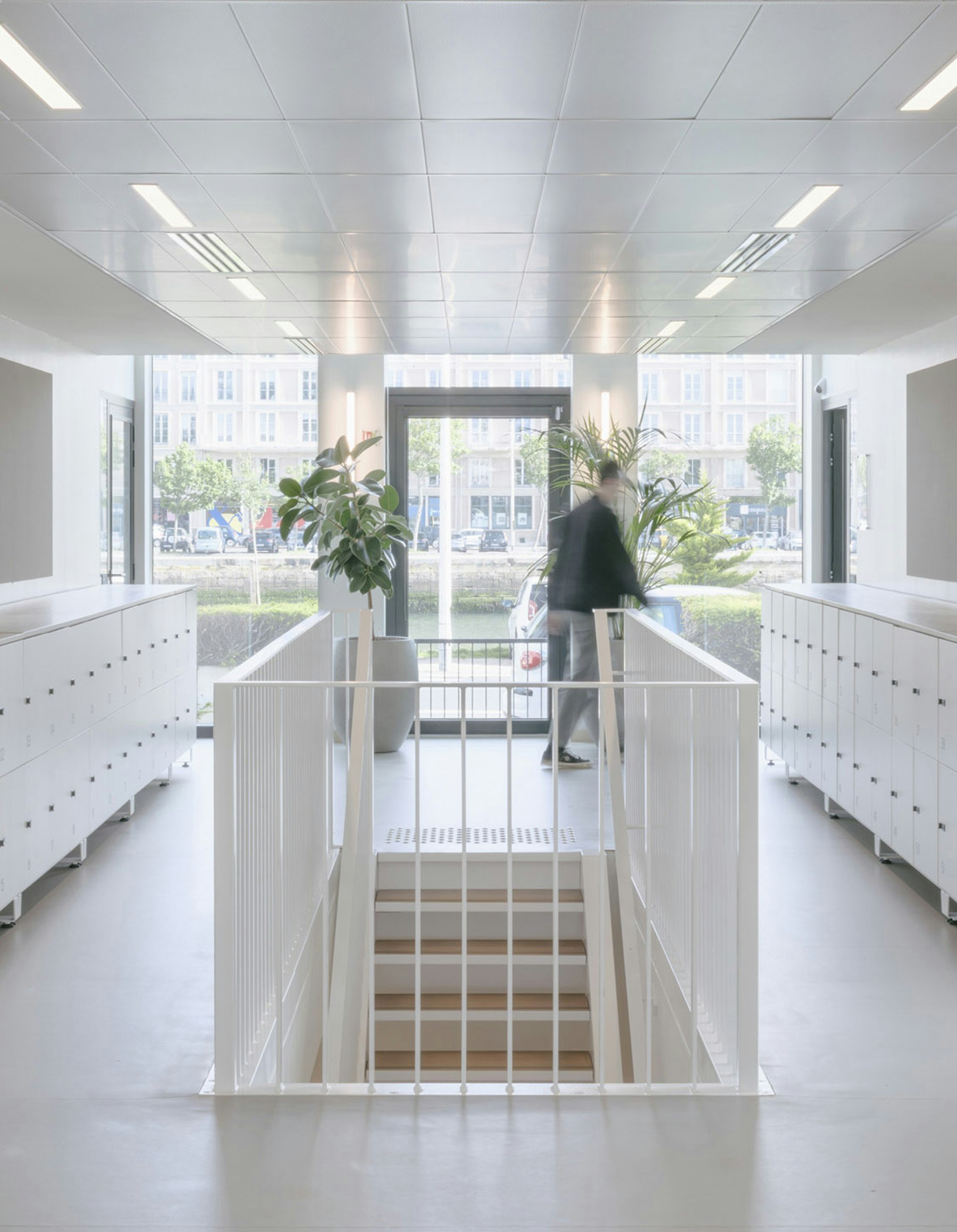 The basin-side forecourt was realigned with the main façade and features a locally sourced concrete accessibility ramp. Inspired by Mies van der Rohe’s Farnsworth House, two concrete-and-metal staircases reinforce the modernist heritage with understated elegance.