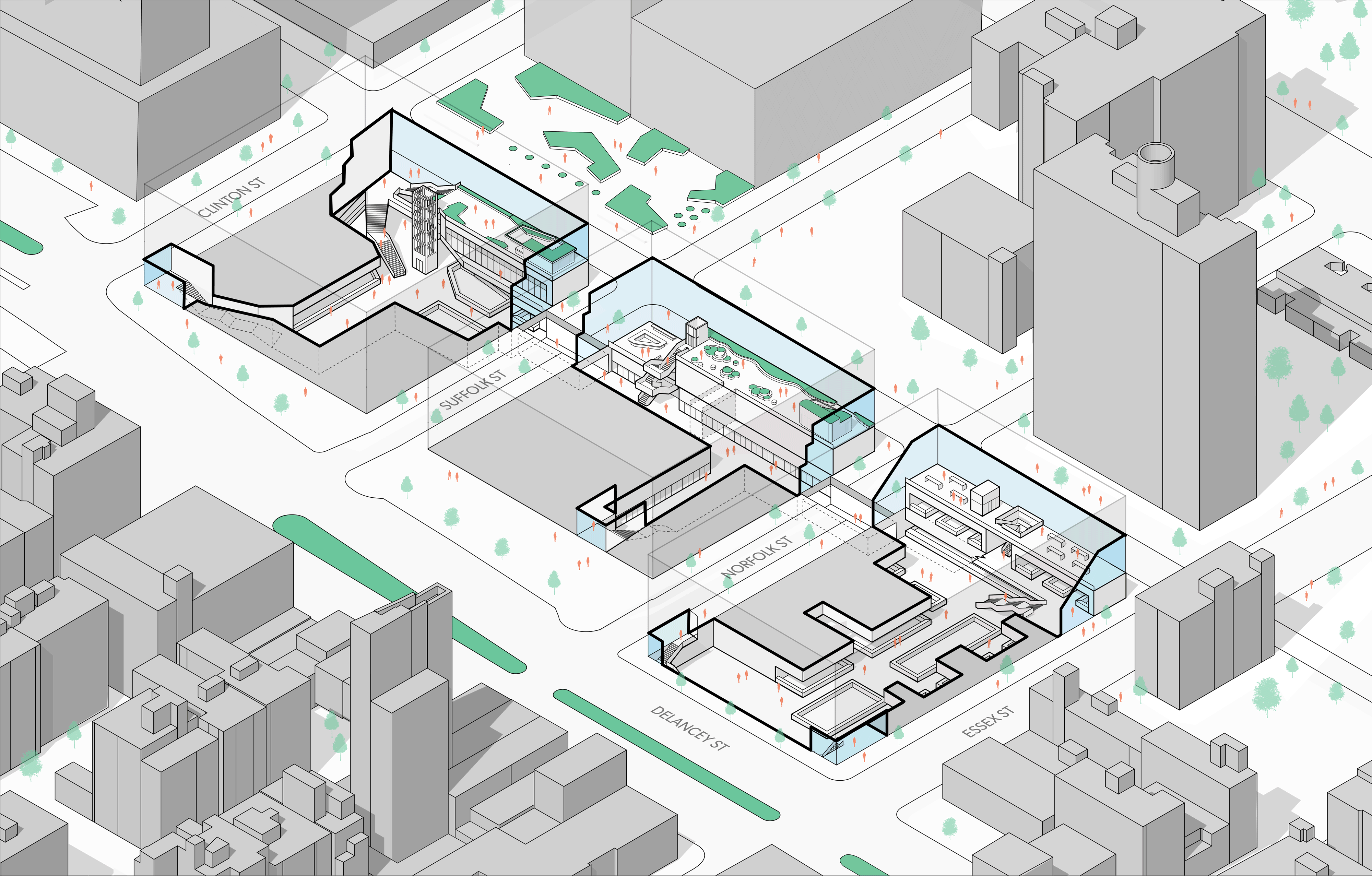 STUDIOS worked with Delancey Street Associates to develop the design of Sites 3 and 4 of The Market Line, a 84,000 square foot retail experience spanning three city blocks in New York’s Lower East Side within the Essex Crossing Master Plan. This one-of-a-kind market will feature over one hundred local art, music, food, and fashion vendors unique to the diverse and eclectic spirit of its neighborhood.