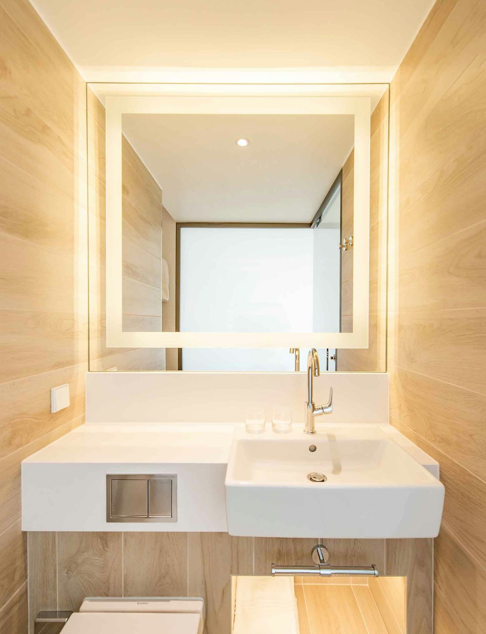 An immersive corridor from the light-filled lobby leads guests to the hotel’s bar and restaurant and away from the bustle of the city streets.