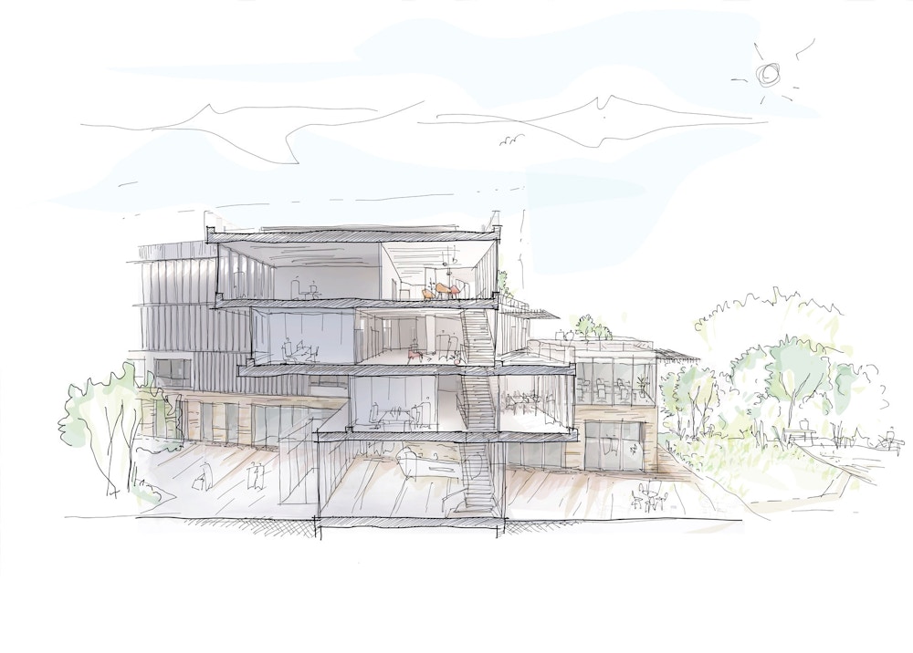 Circulation, access, and paths will be optimized for different user profiles. The central “joint” will link the two buildings and house a reception area on the ground floor as well as all of the site’s conviviality and meeting spaces.